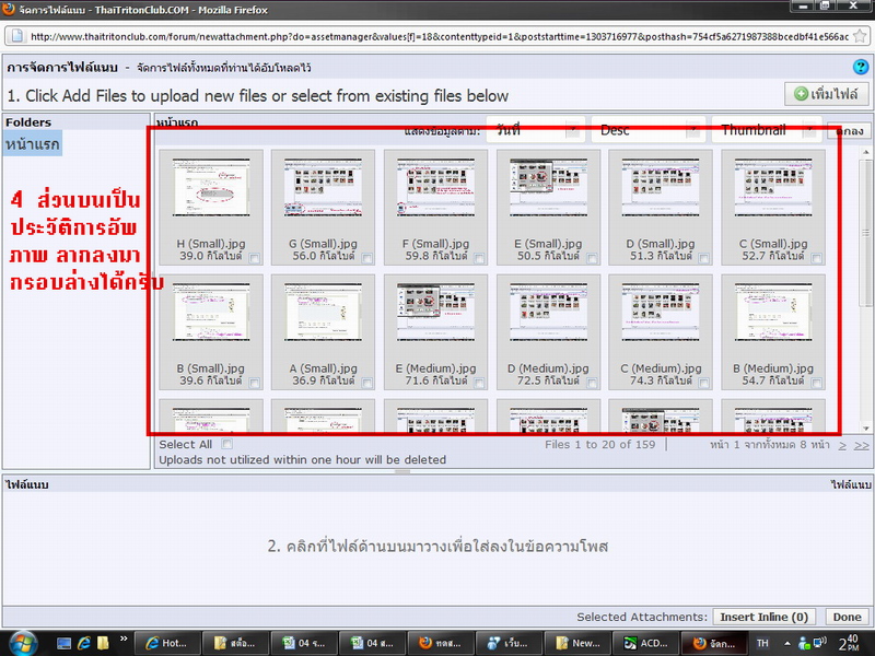 ภาพที่2 ไฟล์ภาพจากที่มีเก็บอยู่ในเวปเรา ลากลงมาวางเฉยๆ(การจัดการไฟล์แนบ-จัดการไฟล์ทั้งหมดที่ท่านได้อับโหลดไว้ 1. Click Add Files to upload new files or select from existing files below)
