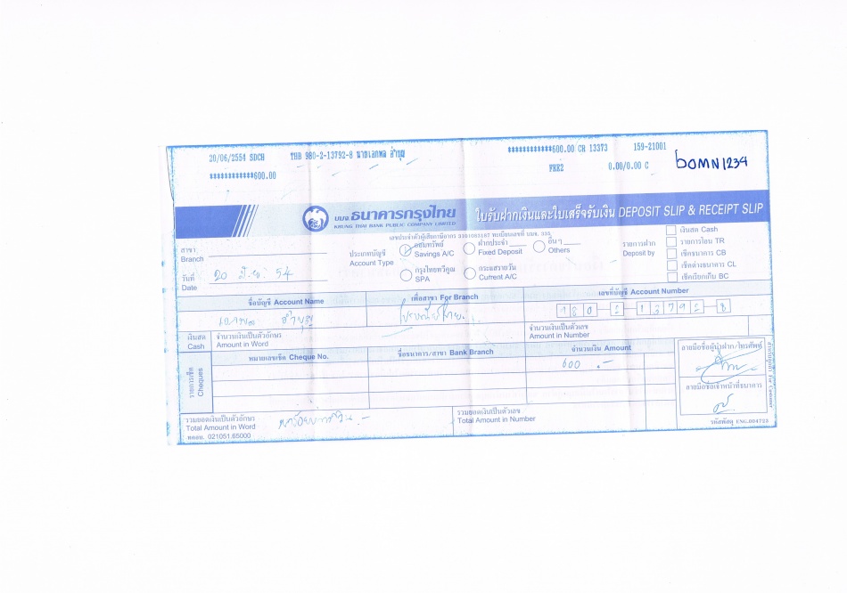 เลขที่บัญชีสำหรับโอนเงินค่าเสื้อ ttc นนทบุรีครับ