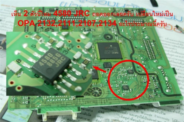 ใน 2 อย่างนี้มี ic opamp ครับ เปลี่ยนซะ เอาของดีๆใส่ ไม่เจ็บตัวครับ ผมรับรองได้ ว่าเสียงผิดหูไปจากเดิม(มาก)แน่นอน