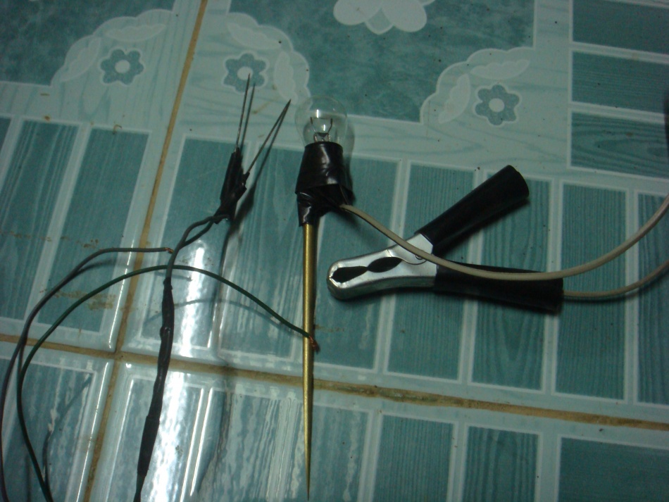 เสร็จแล้วนำแท่งเหล็กมาเชื่อมติดที่ข้างหลอดไฟ(ผมใช้ตะกั่วเชื่อมครับ)สายไฟนำมาเชื่อมติดกับอีกขั้วของหลอดเป็นอันเสร็จครับ