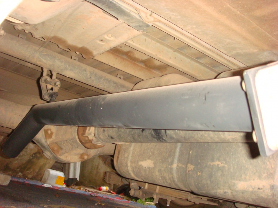 พักเดิมมากับรถครับเพียงแต่เจาะข้างท่อเพิ่มแล้วท่อขนาด1นิ้วมาดัดแล้วเชื่อมติด ปลายท่อลงหน้าเพลาครับ
