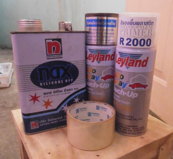 ชั้นที่1 พ่นสีเกาะพลาสติกก่อนครับ ถ้าไม่พ่นตัวนี้ ใช้ไปได้ไม่นานสีที่เราพ่นจะล่อนออกเป็นแผ่นเลยครับ พ่น2รอบ ห่างกันรอบละ5นาทีครับ