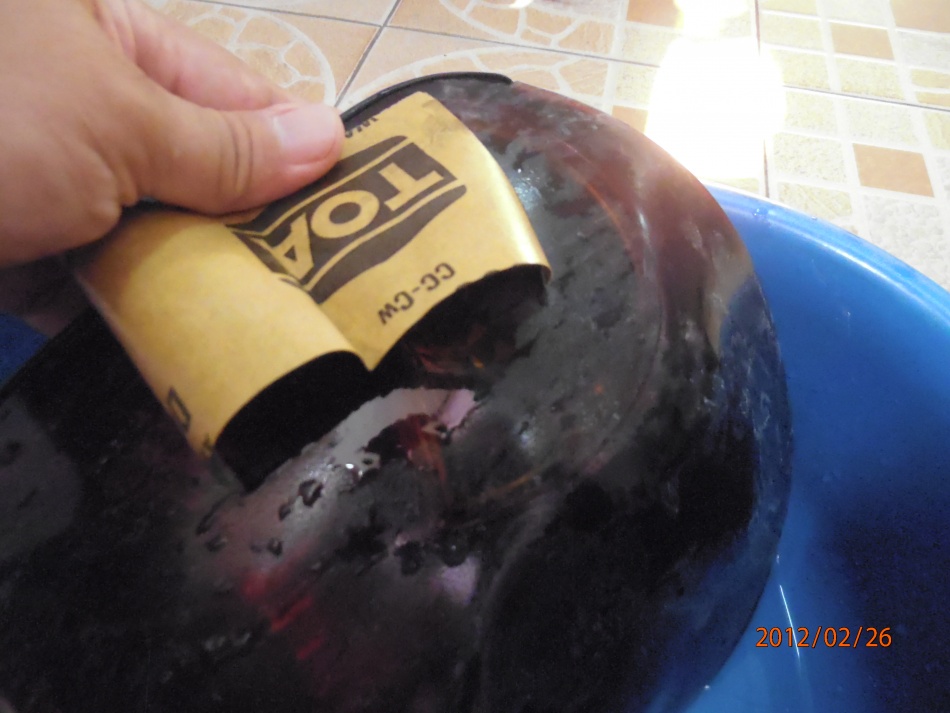 เสร็จจากงานพ่นแล้ว คราวนี้เราก็มาเล่นงานขัดกันต่อนะครับ เริ่มจากใช้กระดาษทรายเบอร์ 2000 ที่เตรียมไว้ มาจุ่มน้ำ แล้วก็ ขัด ขัด ขัด ขัดให้ผิวหน้าของสีเนียนเลยครับ เอ้า!ลุย