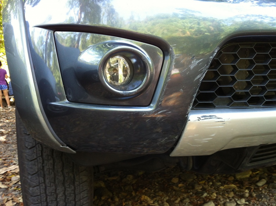 พอดีเอาหน้าไปชนเสามา แผลลึกเข้าไปในกันชนหน้า แล้วก็กันชนล่างหลุด
