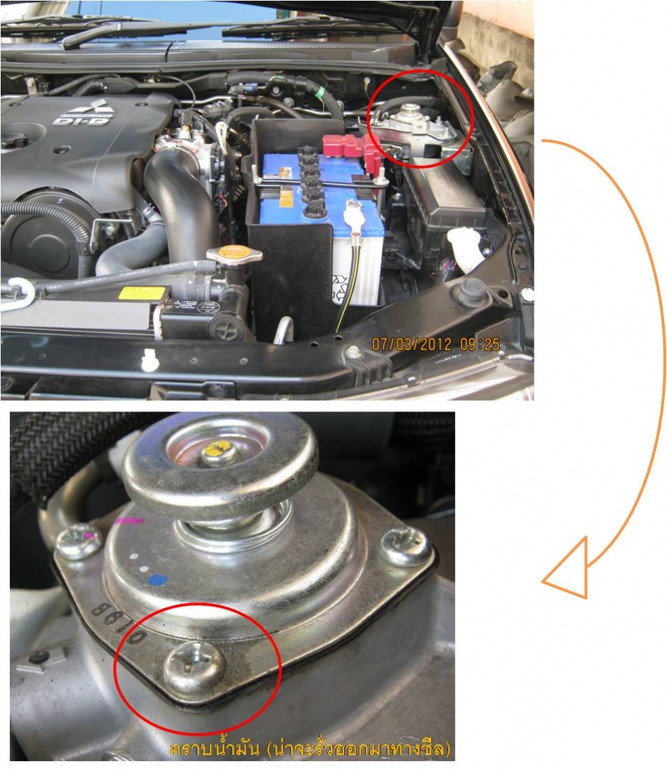 ถ้ารั่วมาจากประเก็นตรงนั้นต้องซึมออกด้านข้างแล้วย้อยลงมาข้างล่างไม่น่าจะออกจากหัวน๊อตแฉกนี้ ลองเข็ดดูก่อนแล้วคอยติดตามดูครับ