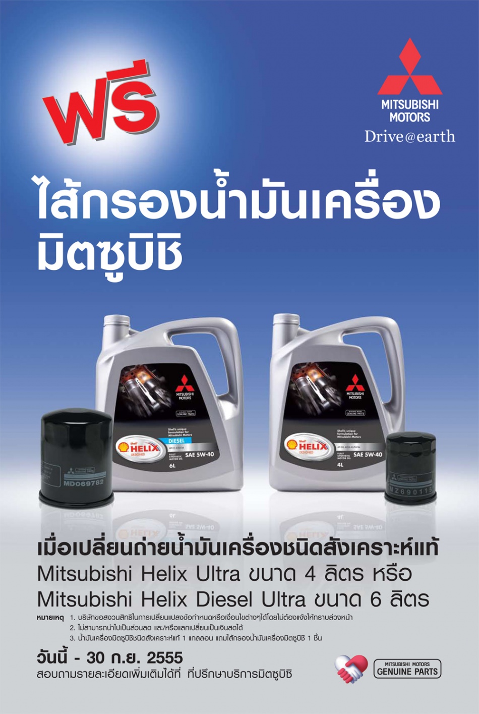 ฟรี! ไส้กรองเมื่อเปลี่ยนถ่ายน้ำมันเครื่องสังเคราะห์ที่ศ ูนย์มิตซู