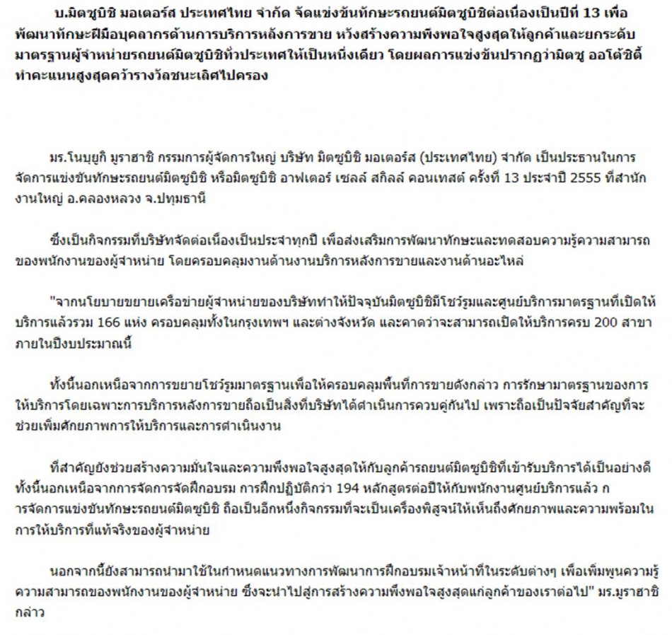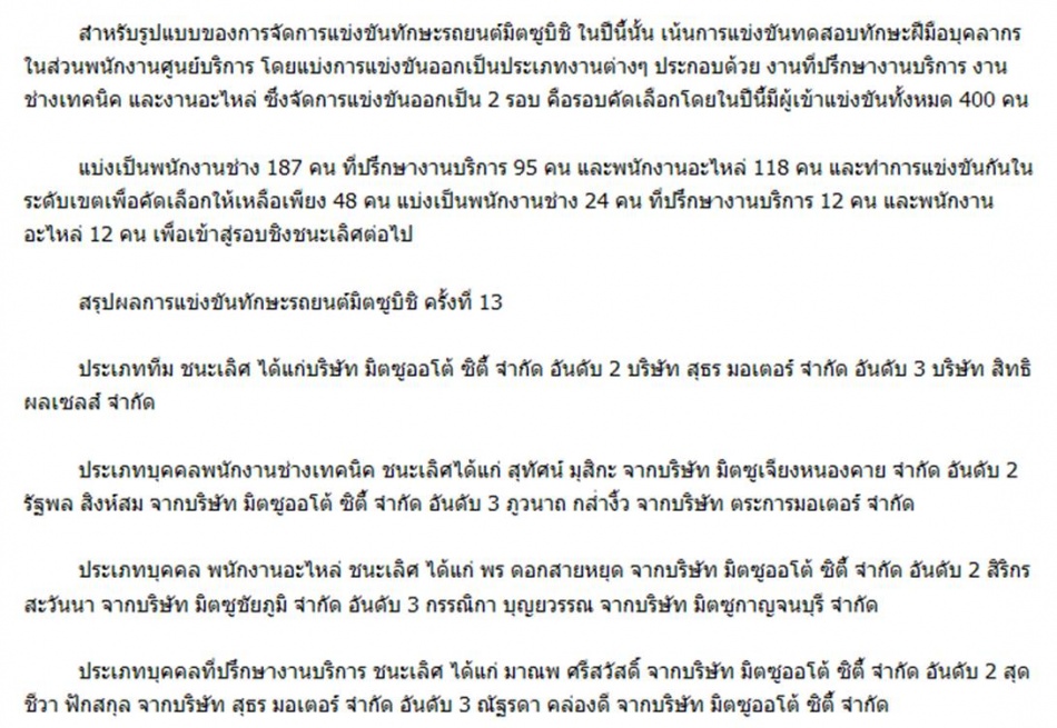 ตอบ: ผลการแข่งขันทักษะมิตซูบิชิครั้งที่ 13