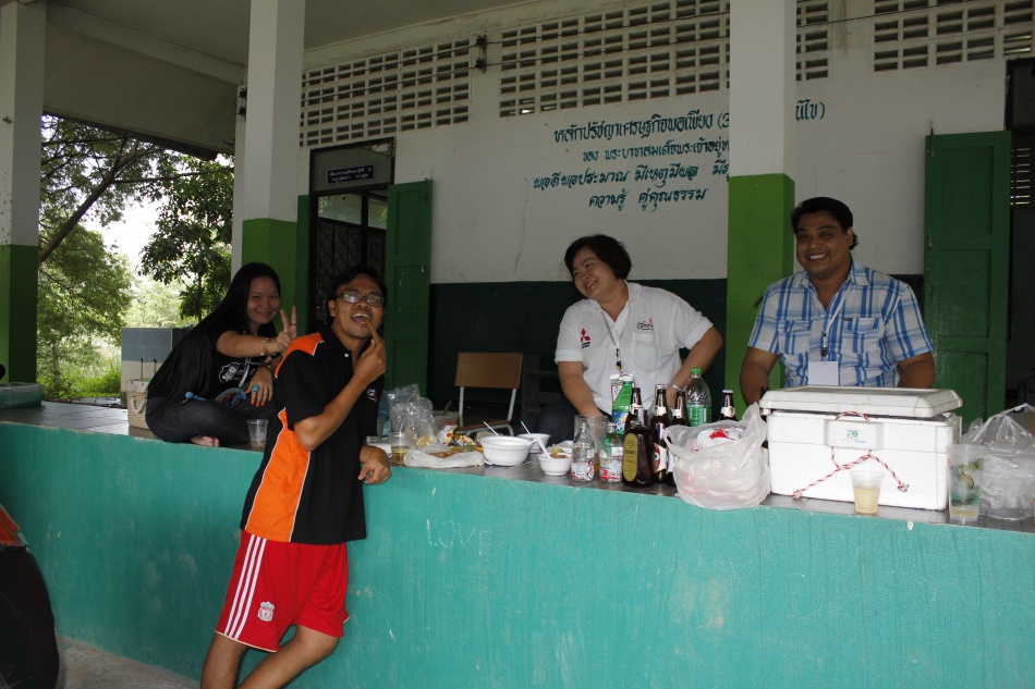 ป้ามองเห็นขวดตั้งเรียงกัน เข้าใจว่าโรงเรียนเขาเอาน้ำแข็งใส่น้ำหวานมาแจกเหมือนที่วัด...555