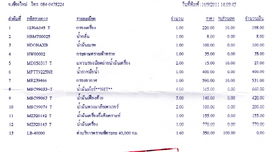 ของผมหิ้วน้ำมันเครื่องไปเอง หมดไป 2900บาท