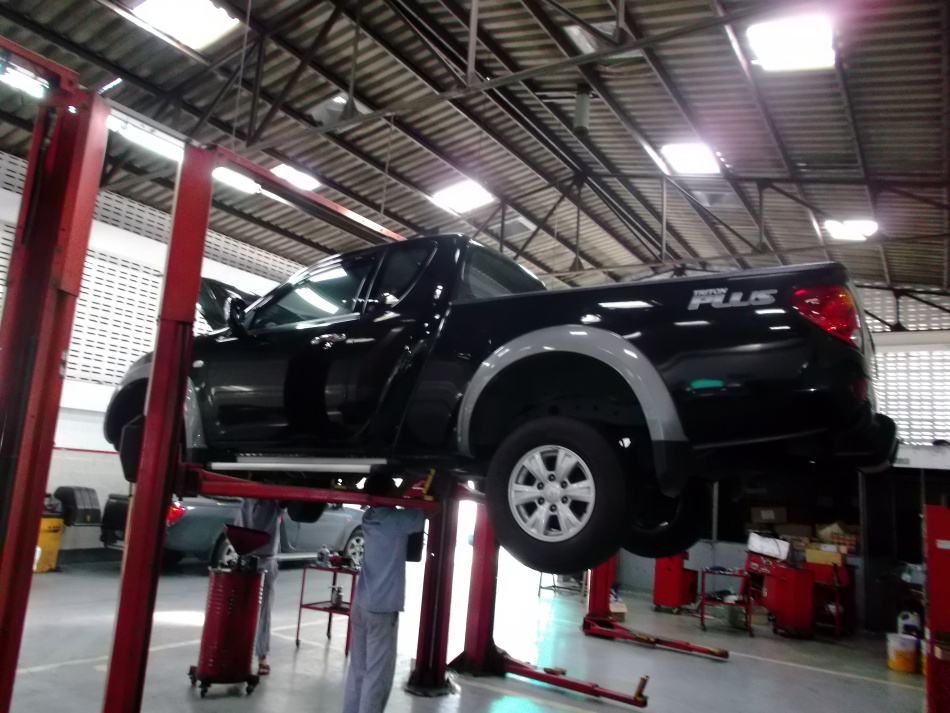 เอาขึ้น hoist ชา่งเอาน้ำมันอะไรไม่รู้ มาฉีดๆ ใส่ตีนผี (ดึงยางครอบกันน้ำออกก่อน แล้วฉีด)