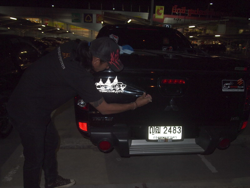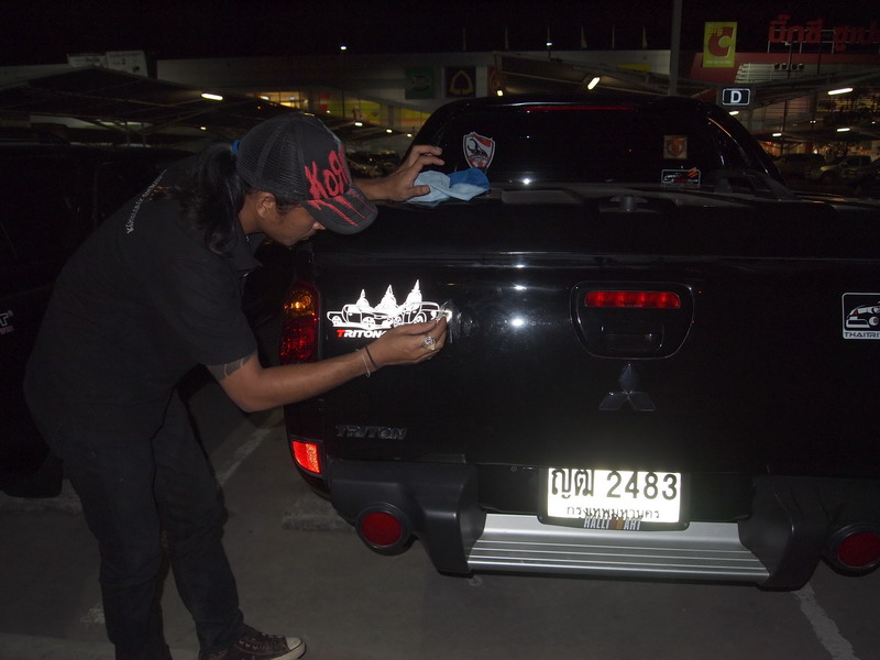 ..2 ภาพแรกครับ น้าอ๊อดกำลังติดสติ๊กเกอร์ไทรทันยุดยาให้กับน้าหนึ่งครับ