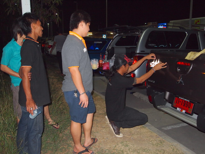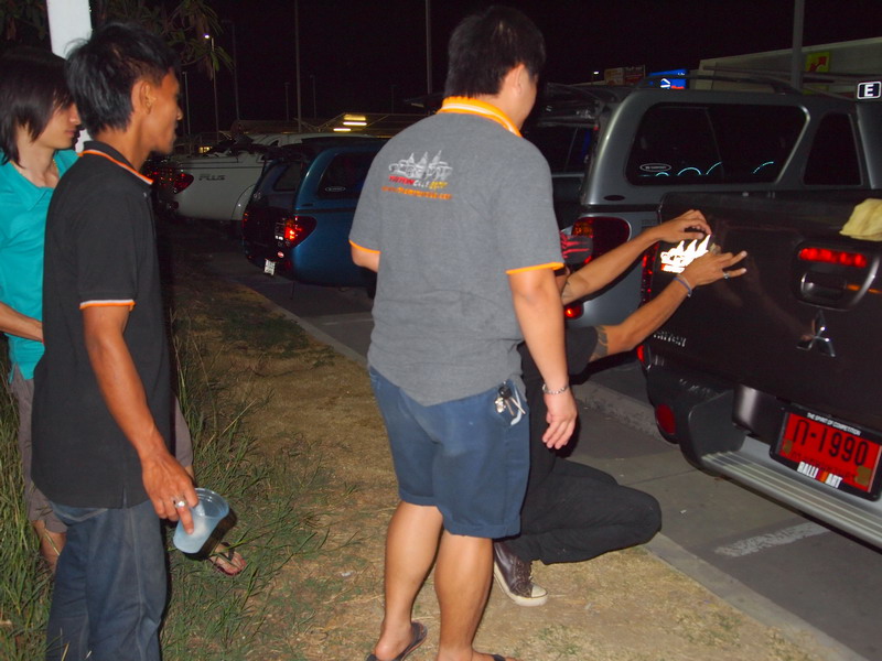..สติ๊กเกอร์ติดกันสดๆ น้ำไม่ต้องครับงานนี้ น้าอ๊อดติดจนชำนาญแล้วครับ..มีน้าหนึ่ง น้าธานี น้าเดี่ยว รอลุ้นชมผลงานครับ