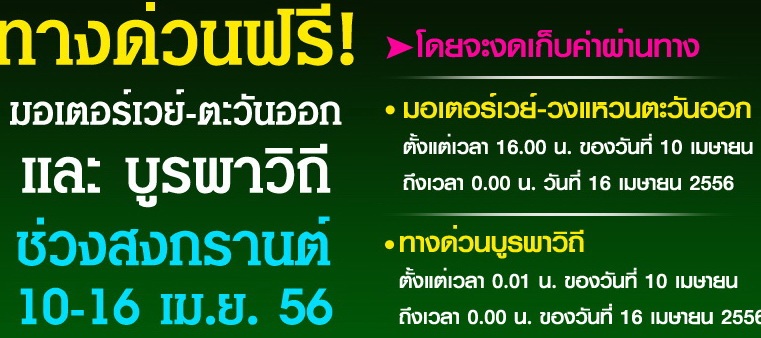 ไฟล์แนบ 202022 กรมทางหลวง ประกาศคืนกำไรคืนสู่ประชาชน โดยการงดเก็บค่าผ่านทาง มอเตอร์เวย์ในช่วงเทศกาลสงกรานต์ ระหว่างวันที่ 11-16 เมษายนนี้