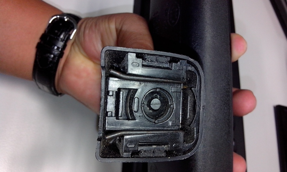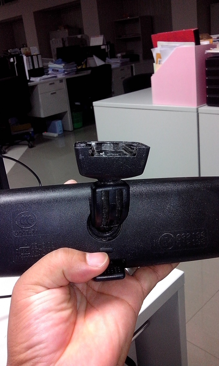 สังเกตุที่ฐานที่ยึดติดกับกระจกด้านหลังจะมีช่องว่างอยู่ใช้เหล็กแบน ๆ งอ 90 องศา แหย่เข้าไปแล้วงัดเหล็กขึ้นพร้อมกับดันตัวฐานให้เลื่อนขึ้นครับ