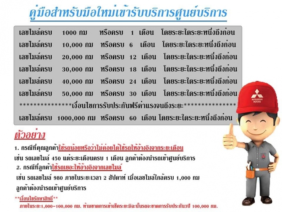 งั้นผมก็ดีไป ผมเข้าไปแก้แหนบดังตอนพันกว่ากิโล ทางศูนย์เองก็บอกว่าเข้าหมื่นโลทีเดียวเลยตามคู่มือ ซึ่งคู่มือผมก็ไม่มีคูปอง 1000 โลอ่ะ มีระยะทุกหมื่น+กับฟรีค่าใช้จ่าย 3 ระยะแค่นี้เอง รายละเอียดในคู่มือก็ไม่มีการตรวจเช็คระยะ 1000 โล ถ้าเป็นอย่างนี้ไม่มีสิทธิมจะตัดประกันเราได้ครับ ถ้าตัดก็ฟ้องได้