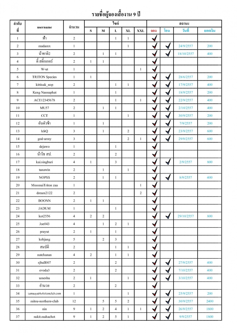 ตอบ: รับจองเสื้องาน9 ปีไทรทันคลับ@นครนายก