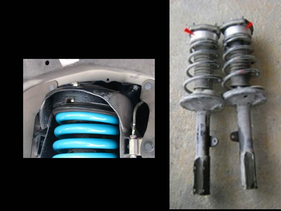 สำหรับด้านหน้า จะเป็นสปริงยกใช้กับช๊อคอัพที่ยาวสแตนดาร์ท หรือ ช๊อคอัพยก(ยาวมากกว่าปกติ)กับสปริงสแตนดาร์ท หรือ ช๊อคอัะยกกับสปริงแต่ง(จะสูงสแตนดาร์ทหรือยก2"ก็ตาม) ล้วนมีผลลัพท์ไม่ต่างกัน คือ เพิ่มความสูงให้กับตัวรถ