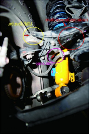 พอเราใส่แผ่นสเปเซอร์รองปีกนกบนมันก็จะช่วยเพิ่มระยะและมีพื้นที่ให้ใสยางกันกระแทกขึ้นไปในตัวครับ และตั้งศูนย์หามุมแคมเบอร์ได้ง่ายขึ้น ลองทำดูครับผมก็งูๆแมวๆมั่วไปตามเคย