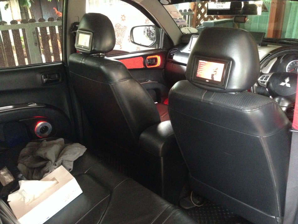 เบาะหลังทำใหม่ (ทีเด็ดอยู่ตรงนี้ล่ะ) เป็นตู้ซัพในตัว นั่งสบายๆคับ เครื่องเล่นเดิมมาพร้อมรถ ใช้ Amp Class AB 4 ch 1 ตัว และ Class D 1500W 1 ตัว PreAmp ใช้ของ Soundforge 5 Band