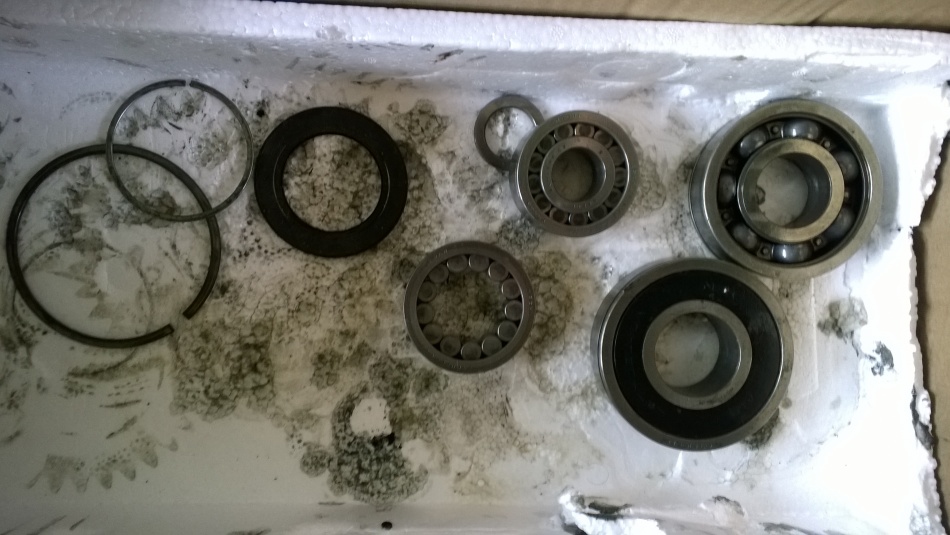 เกิดจากลูกปืนเกียร์ 1 ถูกบดแหลกเหลวไม่มีชิ้นดี ลามไปถึงลูกปืนราวเกียร์ด้วย แต่โชคยังดีที่เฟืองเกียร์ไม่เป็นไร ช่างบอกว่าเกิดจากไม่ได้ถ่ายน้ำมันเกียร์ตามกำหนด ทั้งๆที่ผมเข้าศูนย์เช็คตามระยะตลอด งง ครับ ว่าศุนย์มันเบิกของมาแล้วมันถ่ายให้เรารึเปล่า