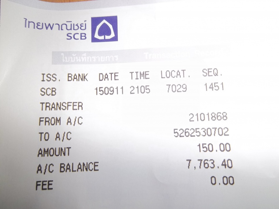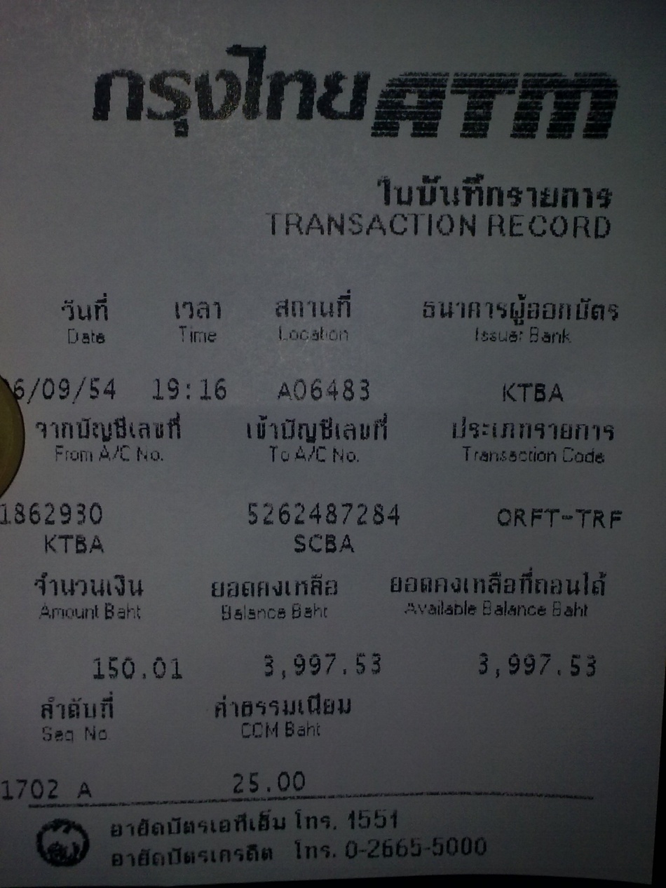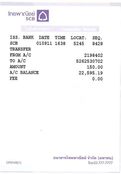 โอนไปแล้วนะครับ 150 บ. เมื่อบ่ายวันที่ 2/9/54
