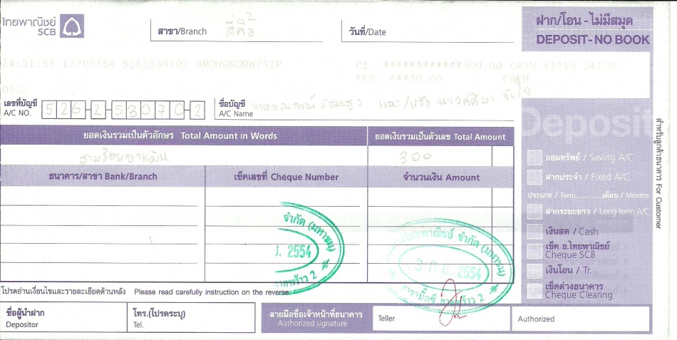 - ธ. ไทยพาณิชย์ เลขที่บัญชี 526-253070-2