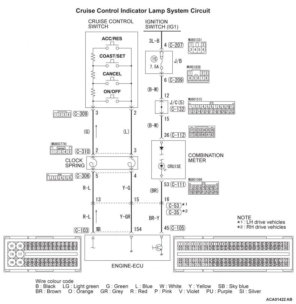 เจอหละ ขา 45 ของ C-105 สายไฟ BR-Y สัญญาณ(-) ไปไฟครูซ ครับ