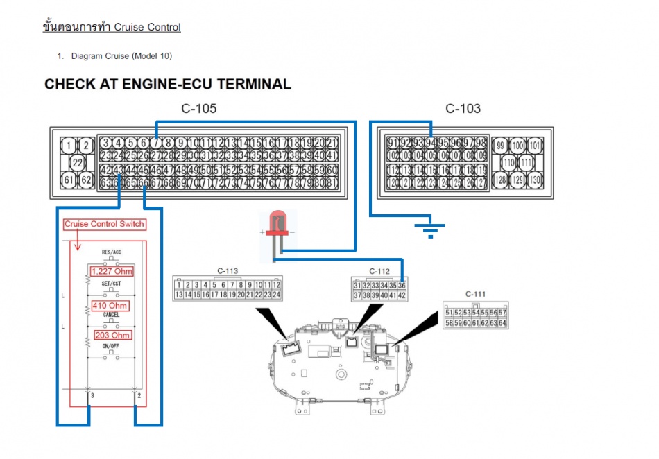 เจอหละ ขา 45 ของ C-105 สายไฟ BR-Y สัญญาณ(-) ไปไฟโชว์ครูซ ครับ