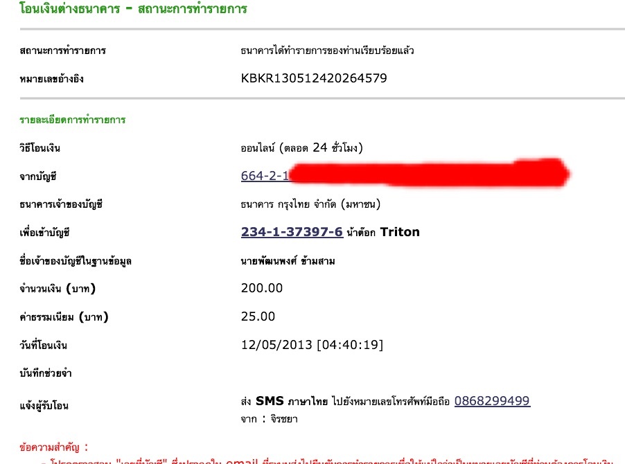โอนให้แล้วนะครับ 200 บ. วันที่ 30 เม.ย./17.00 น. ชื่อ นันท์นภัส คำสม แผนกซ่อมบำรุง บริษัทไทยซัมมิท เอนจิเนียริง จำกัด 207 หมู่ 2 ต.คลองตำหรุ อ.เมืองชลบุรี จ.ชลบุรี 20000