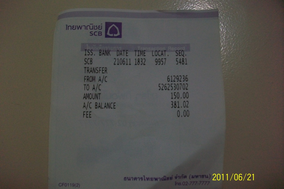 วันนี้ไม่ได้เอากล้องมา พิมพ์เอกสารการโอนเงินให้แล้วกันนะค่ะ