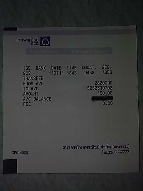 บริษัท คาสิโอ(ประเทศไทย)จำกัดเลขที่60/70หมู่19 ต.คลองหนึ่ง อ.คลองหลวง จ. ปทุมธานี 12120 รูปสลิปไม่ชัดขออภัยนะครับมือถือเก่าไปครับ ขอบคุณครับ