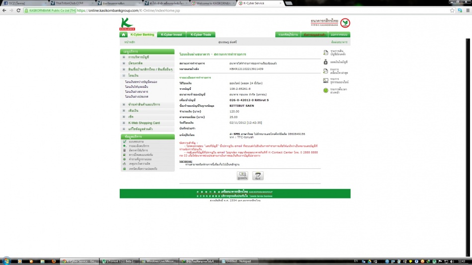 โอนแล้วนะครับ 120.- บาท 24/10/2012 10:20 น.