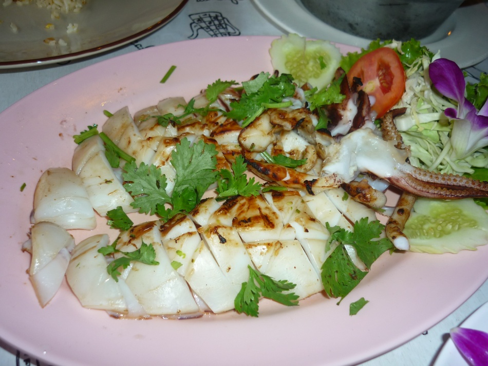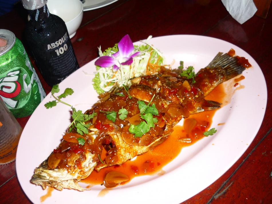 พาวกไปเวียนมา.....เข้าเมืองกันต่อครับ ร้านนี้อยู่ติดกับแม่น้ำจันท์ครับ อยู่หลังโรบินสัน ร้านปั้นจิ้ม นั่นเองครับ ร้านนี้อาหารออกเร็วครับ รอไม่นาน ราคาก้อพอสมควรครับไม่แพงอย่างที่คิด..ร้านนี้ผมยกเป็นร้านประจำครอบครัวเลยครับ เพราะมีที่ให้เด็กๆได้วิ่งเล่น ถ้าฝนไม่ตกก้อลงไปนั่งริมน้ำได้ แต่ยุงจะเยอะนิสนุง เมนูเด็ดเห็นจะเป็นปลาส้มทอดมาพร้อมเครื่องเคียงครับ แล้วก้อจำพวกยำยำทั้งหลาย ส้มตำปูม้าก้ออร่อยครับ รวมๆแล้วอร่อยทุกอย่างครับ..อิอิ