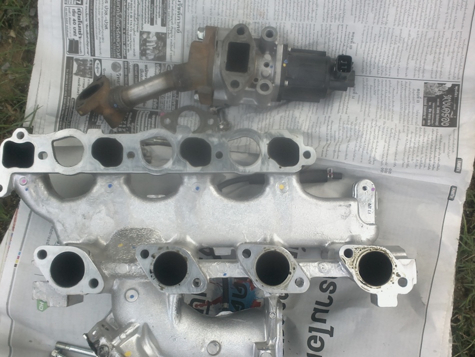 ทีแรกกะจะไม่โพสแล้วครับ แต่ขอมา รายงานผลหน่อยครับ วันนี้ 8.30 ตัดสินใจ ถอดลิ้นปีกผีเสื้อล้างดู แต่พอถอดออกแล้ว มองเห็ภายในท่อไอดี บริเวณปากทางเข้า ของมอเตอร์ อีจีอาร์ เขม่าดำมาก(ผมอุด อีจีอาร์ นานแล้ว น่าจะก่อน 5000 โลแรกมั้ง) ทีแรกคิดว่า แค่เขม่า เลยลองเอาท่อยาง แหย่ดู อ้าวนี่มัน เขม่าผสม น้ำมันเครื่อง เหนียวหนืด นี่หว่า เลยจัดการ ล้างท่อร่วมไอดีทีเดียวเลย เอ้าลุย เวลาไม่มากต้องไปส่ง ผบ. ไปทำงานตอน10.45 น
