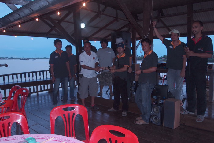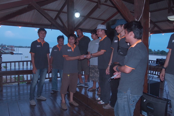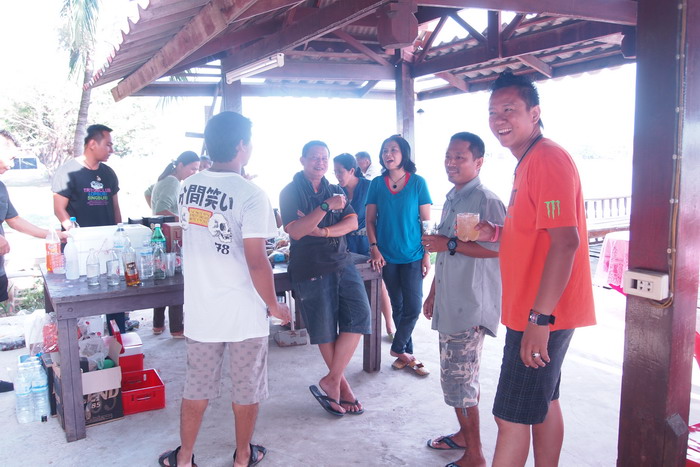 ..เช้าวันใหม่ ก่อนเดินทางออกจากรีสอร์ท ถ่ายภาพหมู่กันสักหน่อยครับ ก่อนน้าตุ้ย น้าเอส น้าไก่โต้ง ขอตัวกลับก่อน และที่เหลือข้ามฝั่งไปถ่ายภาพหมู่กับหลวงปู่โตครับ