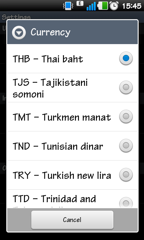 จากรูป (C) ถ้าเลือก Currency ก็จะเข้าสู่การเลือก หน่วยเงินตรา ครับ