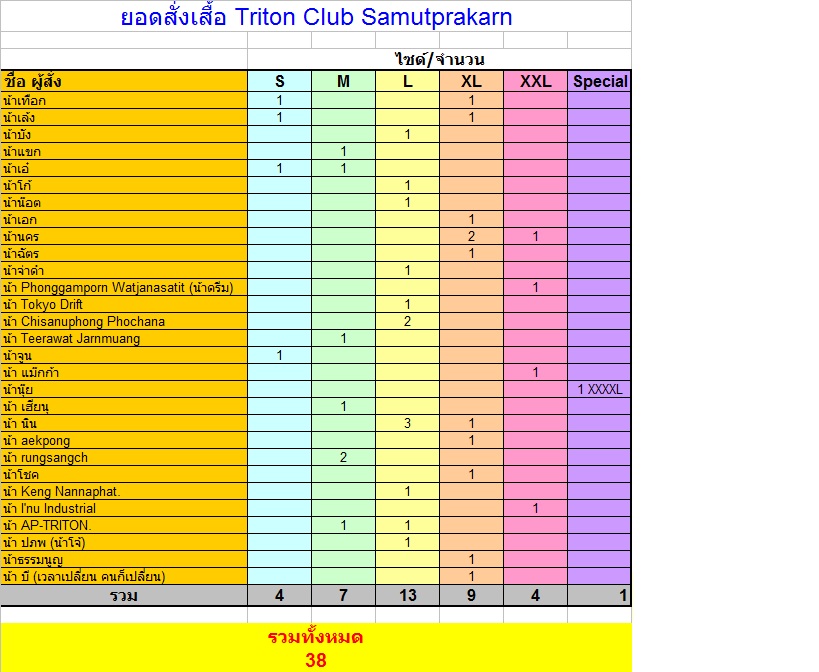 ตอบ: เปิดจองเสื้อ Triton Club Samutprakarn โครงการ 2
