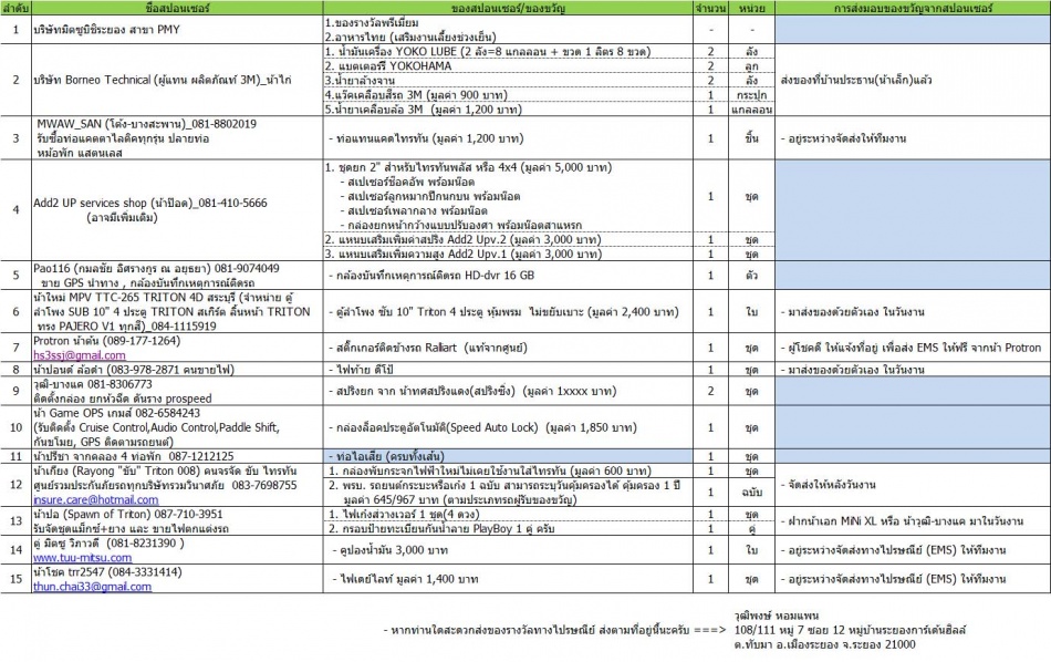 จากทีมงาน 8 ปี ผมมีหน้าที่รวบรวม ของขวัญจากสปอนเซอร์ใจดี ที่ต้องการส่งเสริมกิจกรรมคลับเรา ที่จะมีขึ้นในวันงาน 8 ปี ไทยไทรทันคลับ ณ.ระยองในวันที่ 19/ตค/56 ที่จะถึงเร็วๆนี้