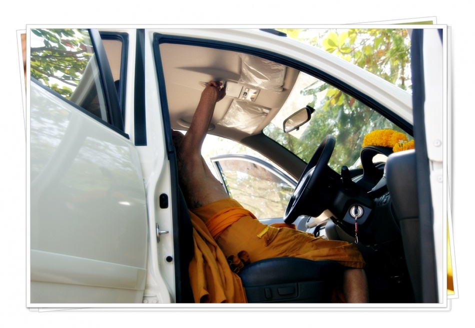 นำรถไปให้หลวงพ่อที่บ้านเจิมเพื่อเป็นสิริมงคลแก่ตัวเอง กับรถหน่อย