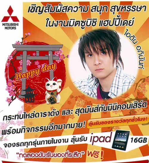 งานวันที่ 2 มีนา 56 คับ ที่ศูนย์บริการมิตซูฯมุกดาหาร ลูกสาวผมว่าทียี่ห้ออื่นเขามีแต่ดาราหรือศิลปินสตริงดัง ๆ มา