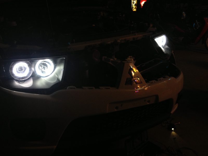 ก็ถอดน๊อต 4 ตัว แล้วก็ใช้ไดร้อนเป่าขอบหน้าโคม ให้ซิลิโคนขยายตัว แล้วค่อยๆ ดึงฝาครอบโคมออก
