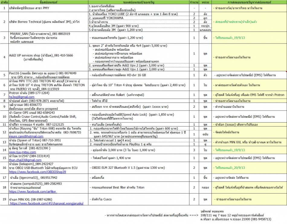 จากทีมงาน 8 ปี ผมมีหน้าที่รวบรวม ของขวัญจากสปอนเซอร์ใจดี ที่ต้องการส่งเสริมกิจกรรมคลับเรา ที่จะมีขึ้นในวันงาน 8 ปี ไทยไทรทันคลับ ณ.ระยองในวันที่ 19/ตค/56 ที่จะถึงเร็วๆนี้