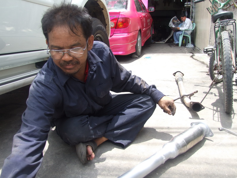 มาถึงร้านน้าปรีชาเที่ยงๆ ไปถึงท่อแบบใหม่ตั้งรออยู่หน้าร้านแล้ว ไม่พูดอะไรมาครับจัดการถ่ายรูป เสร็จมุดใต้ท้องรถทันที ได้สอบถามน้าปรีชาเกี่ยวกับท่อใบใหม่นี้ว่ามีอะไรใหม่บ้าน ก็ได้คำตอบว่าเป็นท่อที่รวมสูตรต่างๆมาไว้ในใบนี้ สามารถปรับระยะท่อให้ได้ความแรงตามต้องการครับ คือสามารถปรับได้โดยการหมุนคายน๊อตที่ทำไว้ แล้วปรับตามล่องที่ทำไว้คือถ้าปรับไปทางหัวท่อจะเหมือนท่อเดิมติดรถมา แต่ถ้าปรับไปทางปลายท่อจะเป็นการปรับให้แรงตามกิ๊กๆที่น้าปรีชาทำมาตามท่อสูตรต่างๆ เลือกได้ตามใจชอบตามความแรงที่ต้องการครับ :24 3: