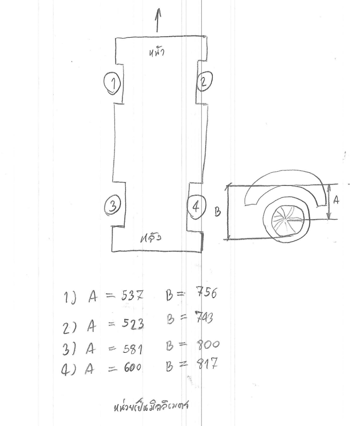 หากท่านใดพอสะดวก เอาตลับเมตรทาบกึ่งกลางล้อ (ล้อเดิมยางเดิม) โดยวัดที่ขอบล่างของแม๊กซ์ แล้วยืดตลับขึ้นไปตรง ๆ วัดที่ขอบคิ้วล้อล่างครับ ว่าได้ความสูงเท่าไหร่ ขอทั้งหน้าและหลัง ซ้ายและขวาด้วยนะครับ