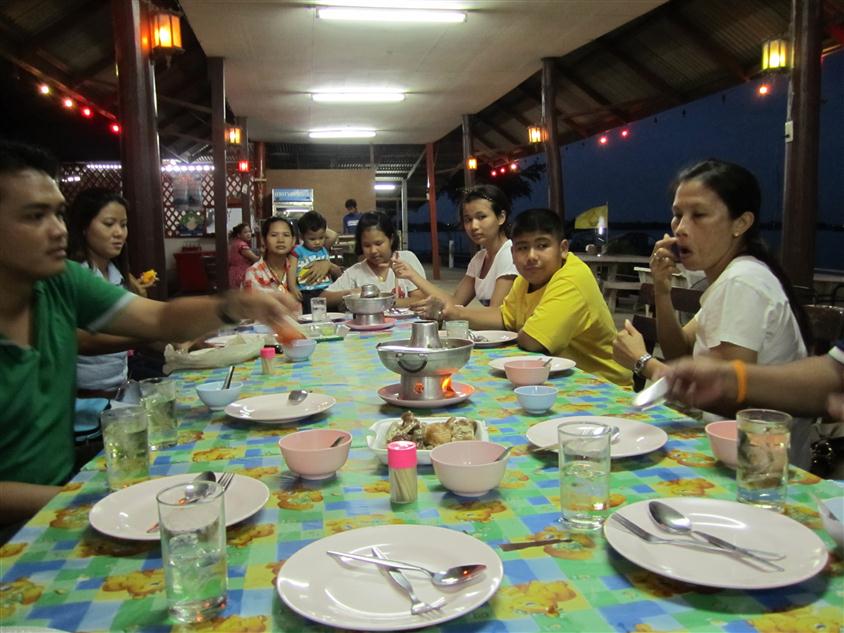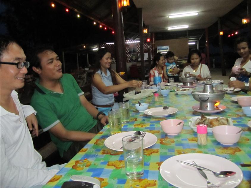รอไม่นานอาหารก็ทยอยมาเต็มโต๊ะ......อาหารก็อร่อยนะครับ โดยส่วนตัวผมว่าเมนูปลาช่อนลุยสวนอร่อยมาก และก็อร่อยหลายอย่าง แต่ยำกบที่น้าๆสั่งกันมาผมไม่รู้นะเพราะไม่ได้กินแต่ดูแล้วน่าจะอร่อยเพราะน้าแขกเล่นซัดน่องกบซะเรียบเลย....555