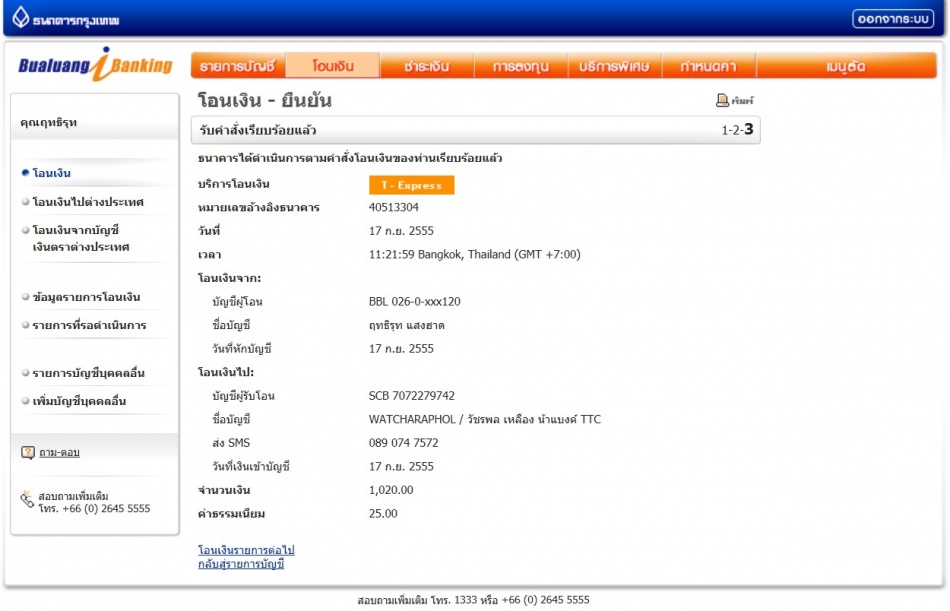ของผม 3 ตัวโอนแล้วนะครับน้าแบงค์ 900+120 ถูกต้องนะครับ