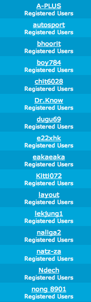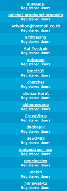 andone Registered Users arejiang Registered Users AU-ME21 Registered Users Jo2j_Triton Registered Users Keng Konan Registered Users kong6907 Registered Users littleguy Registered Users mesh Registered Users miiz Registered Users num_surayut Registered Users nupan Registered Users PalmEve Registered Users runcharkorn_y Registered Users santiparp Registered Users sataporn_me Registered Users tae1989 Registered Users thawatchai.na Registered Users VGT543 Registered Users worajak Registered Users ชาติหินกองzoneสระบุรี Registered Users
