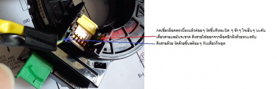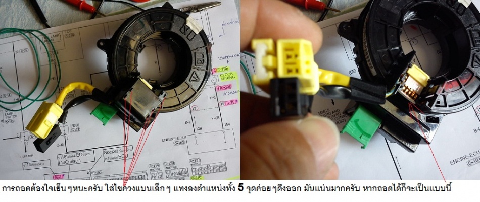 ตอนถอด clock springระวังให้มากหน่อยนะครับ อย่าลืมถอดขั้วแบต เพราะมีวงจรของ airbag อยู่ด้วย