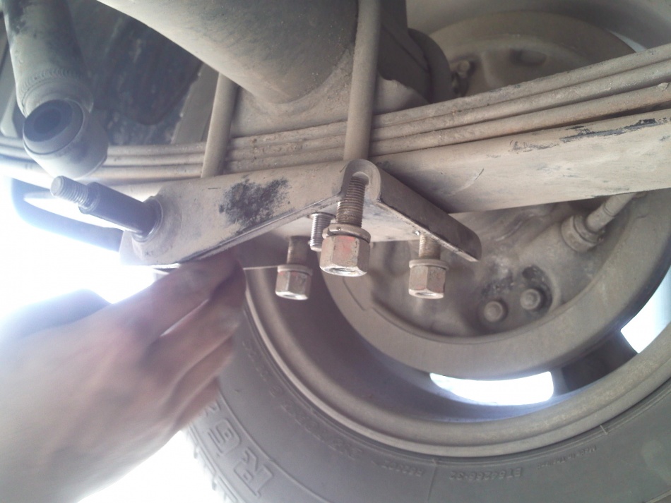 3.เอากล่องโหลดออก สลับแหนบแผ่นล่างสุดกะแผ่นรอง แต่แผ่นสั้นสุดคว่ำเอาด้านเรียบลงพื้น ส่วนโค้งที่อยู่ด้านบนซึ่งจะรับน้ำหนักเมื่อมีน้ำหนักบรรทุก แต่ในสภาพปกติแหนบสามแผ่นบนจะอิสระจากสองแผ่นล่าง