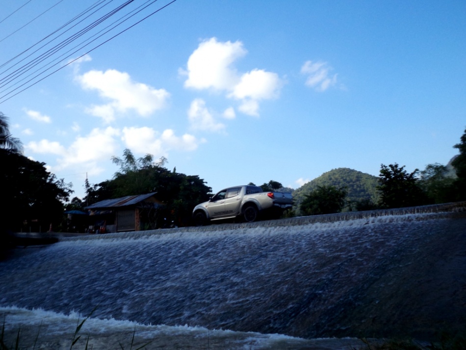 ฝายน้ำล้นตัดผ่านถนนตำบลพญาเย็นปากช่อง ทางไปเขาใหญ่ครับ